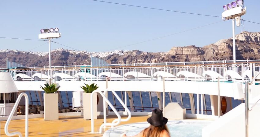 Gemimizin hareketi saat 12:00 Santorini** varış saat 16:30; Siyah kum sahillerinin yukarısında volkanik kayalara tutunan beyaz köyleriyle ünlü Santorini Adası, ismini 13. Yüzyılda Azize Irene`ye atfen almış. Ada`daki en önemli yerler Akrotiri, Antik Thira, Fira ve Oia bölgeleri. Adanın merkezi olan Fira, 1956 depreminden sonra yeniden kuruldu. Harika bir manzaraya sahip olan bu merkez, küçük liman Skala Fira`ya 580 basamak uzaklıkta. Bu limana teleferik veya basamaklar üzerinden katırla ulaşmak mümkün. Adanın üçüncü büyük limanı olan Oia depremden sonra geleneksel bir yerleşim birimi halini almış. Neo-klasik malikânelerle çevrili Oia gizemli olarak kabul edilir. Gemimizin hareketi saat 21:30